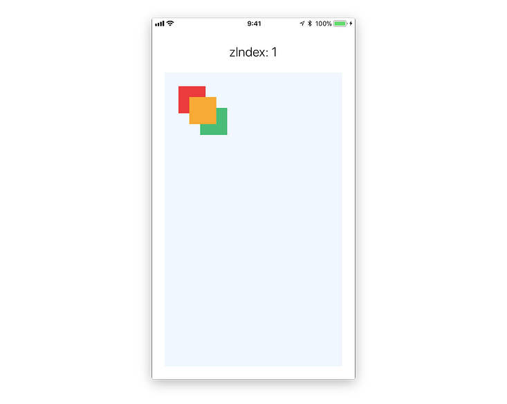 Component bisa diatur dimana tampilannya di atas mana. Di contoh ini, zIndex dari kotak kuning adalah 1